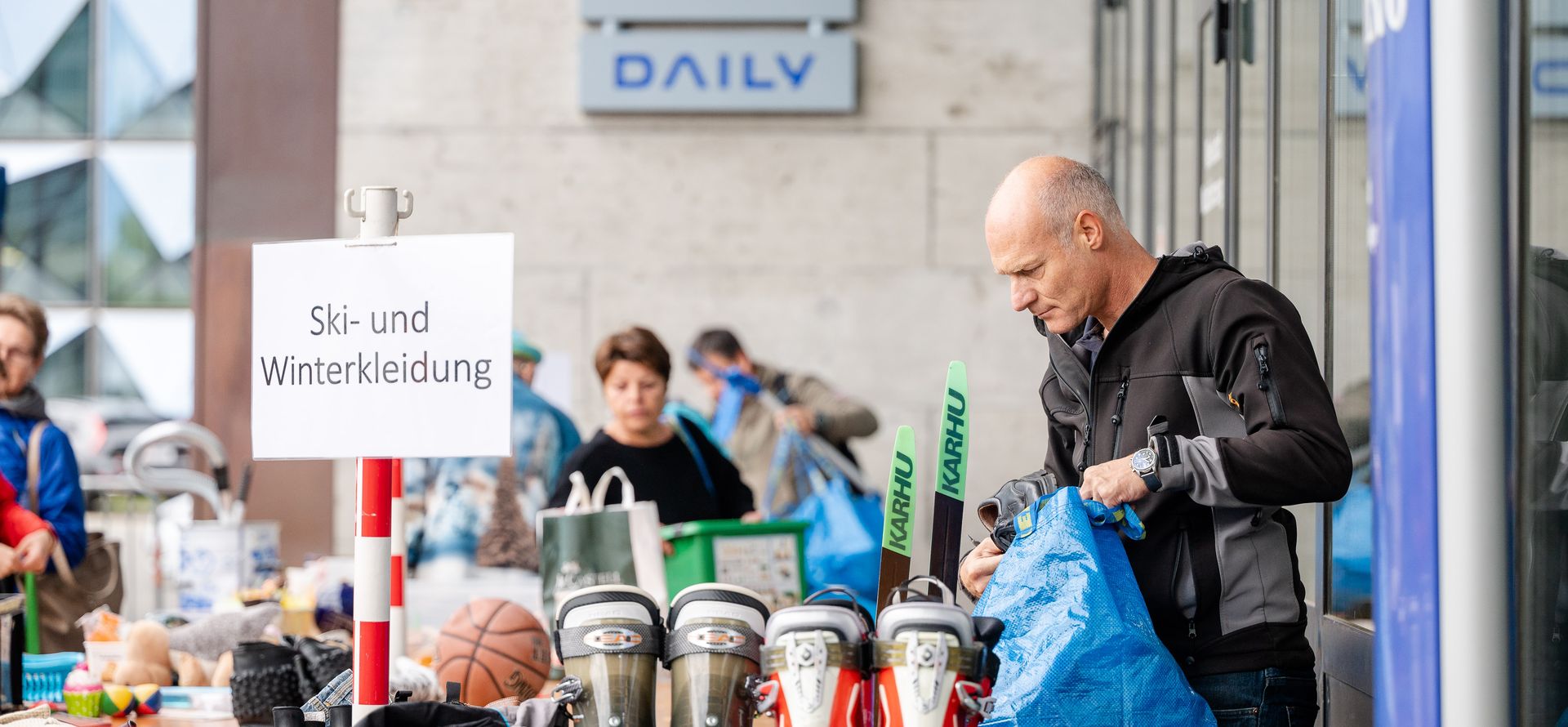 Die Szenerie an diesem herbstlichen Samstagvormittag auf dem Nufa Areal in Vaduz wirkt auf den ersten Blick wie ein typischer Flohmarkt: Viele Menschen, die sich um kleine Zelte und Klapptische tummeln, um die dort ausgestellten Gegenstände unter die Lupe zu nehmen. Von Kleinmöbeln über Kleidung und Haushaltsgeräte bis zu buntem Spielzeug ist hier alles zu finden. Doch statt ihre Ware anpreisende Verkäufer:innen an den Ständen stechen einem lediglich eifrige Männer und Frauen in gelben Signalwesten ins Auge, die laufend neue Ware auf den Tischen verteilen. Alles Gegenstände, die im Minutentakt aus irgendwelchen Kofferräumen und Anhängern ausgeladen werden, um hier gratis an Menschen weitergegeben zu werden, die dafür noch Verwendung finden.